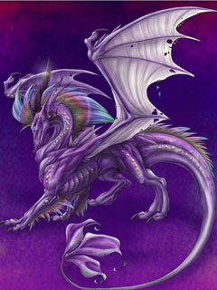 При рождении, чешуя серебряного дракона серо-голубая с серебристым оттенком. Когда дракон достигает взрослых стадий, его окраска медленно светлеет до яркого блестящего серебряного цвета. Молодых драконов постоянно сопровождает запах дождя. Взрослые или старые серебряные драконы имеют настолько изящную чешую, что на ней с трудом можно различить отдельные чешуйки. На расстоянии кажется, что дракон сделан из чистого серебра. Серебряный дракон имеет два вида дыхания: конус холода 80 футов длиной, 5 футов шириной у пасти и 30 футов шириной у основания; и облако парализующего газа 50 футов длиной, 40 футов шириной и 20 футов высотой. Серебряные драконы предпочитают воздушные логова на изолированных горных пиках или непосредственно среди облаков. Если логово в облаках, там всегда будет заколдованная область с твердым полом, чтобы хранить яйца и сокровища. Серебряные драконы добры и полезны. Они с удовольствием помогут добрым существам, если тем действительно нужна помощь. Контактируя с людьми, они часто принимают форму добрых стариков или белокурых девушек. Серебряные драконы не любят насилие и избегают боя, кроме случаев, когда сталкиваются с очень злым или агрессивным противником. Если необходимо, они используют заклинание падение пера, чтобы остановить любые заряды, выпущенные по ним. Они используют стену тумана или управление погодой, чтобы ослеплять или смутить врага до начала боя. Если они разгневаны, они используют обратную гравитацию, чтобы подбросить беспомощного врага в воздух, где его можно схватить. Столкнувшись с летающим противником, серебряный дракон скроется в облаках (часто созданных им самим), останется там, используя хождение в облаках, а затем атакует в момент, когда будет иметь преимущество. Серебряные драконы, кажется, предпочитают человеческую форму своей собственной. Часто они имеют очень крепкие дружественные отношения со смертными. Однако неизбежно дракон вынужден демонстрировать свою истинную форму и уходить, чтобы некоторое время существовать жизнью дракона.Добавлено (2011-Ноябрь-22, 21:25) --------------------------------------------- Аметистовые драконы